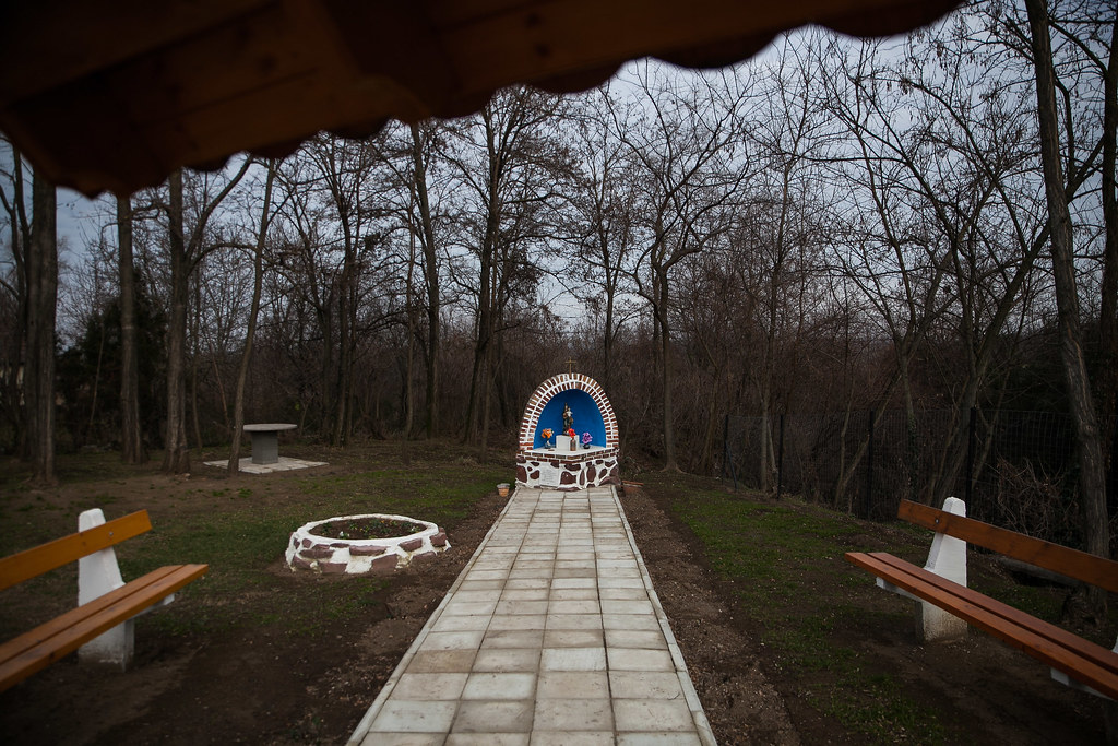 Ezek az emberek tavaly nyáron gondoltak egyet, és úgy döntöttek, hogy kezdenek valamit az óvodával szembeni szemetes tisztással. Nem volt ott előtte semmi, csak gaz, meg néhány fa. Szóltak a település, Öreglak polgármesterének, hogy szükségük lenne némi építő anyagra, mint cementre, téglára, sóderre. Meg is kapták, és pár hét alatt megépítettek egy közösségi teret: rendbetették a füvet, ültettek rózsákat, padokat állítottak, és egy Szűz Mária emlékhelyet.