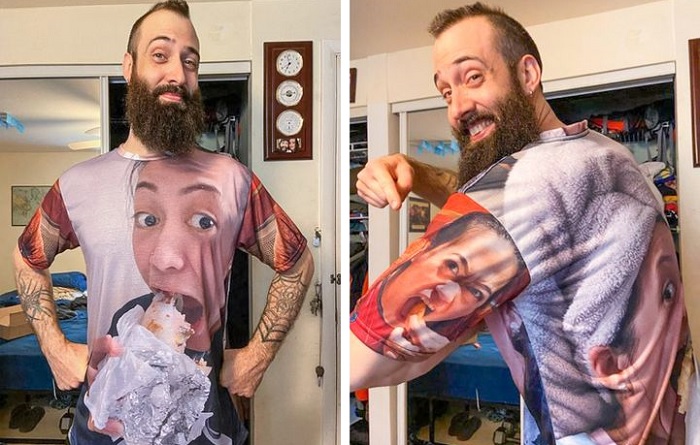 8. A férjem titokban csináltatott magának egy pólót olyan nem túl előnyös fotókból, amiken én vagyok látható evés közben.