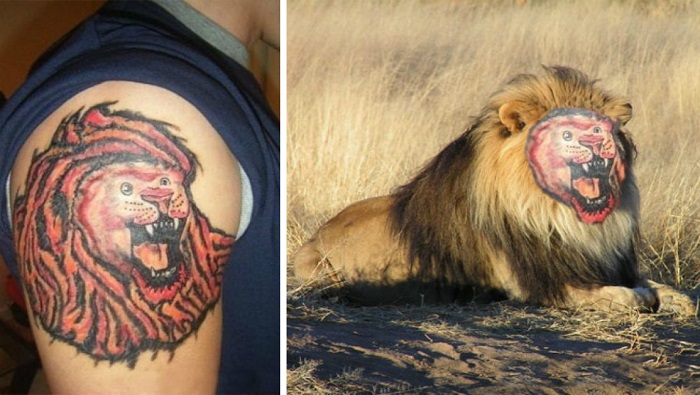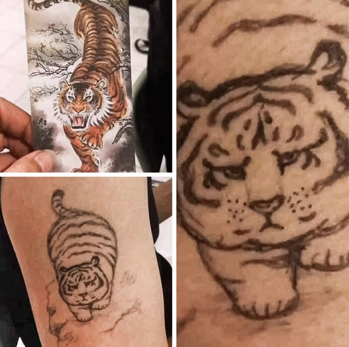 17. Úgy látszik, hogy a vadmacskákkal sokszor meggyűlik a „tetoválóművészek” baja. Ebben az esetben egy tekintélyt parancsoló tigris helyett egy pufók cicát sikerült összehozni.