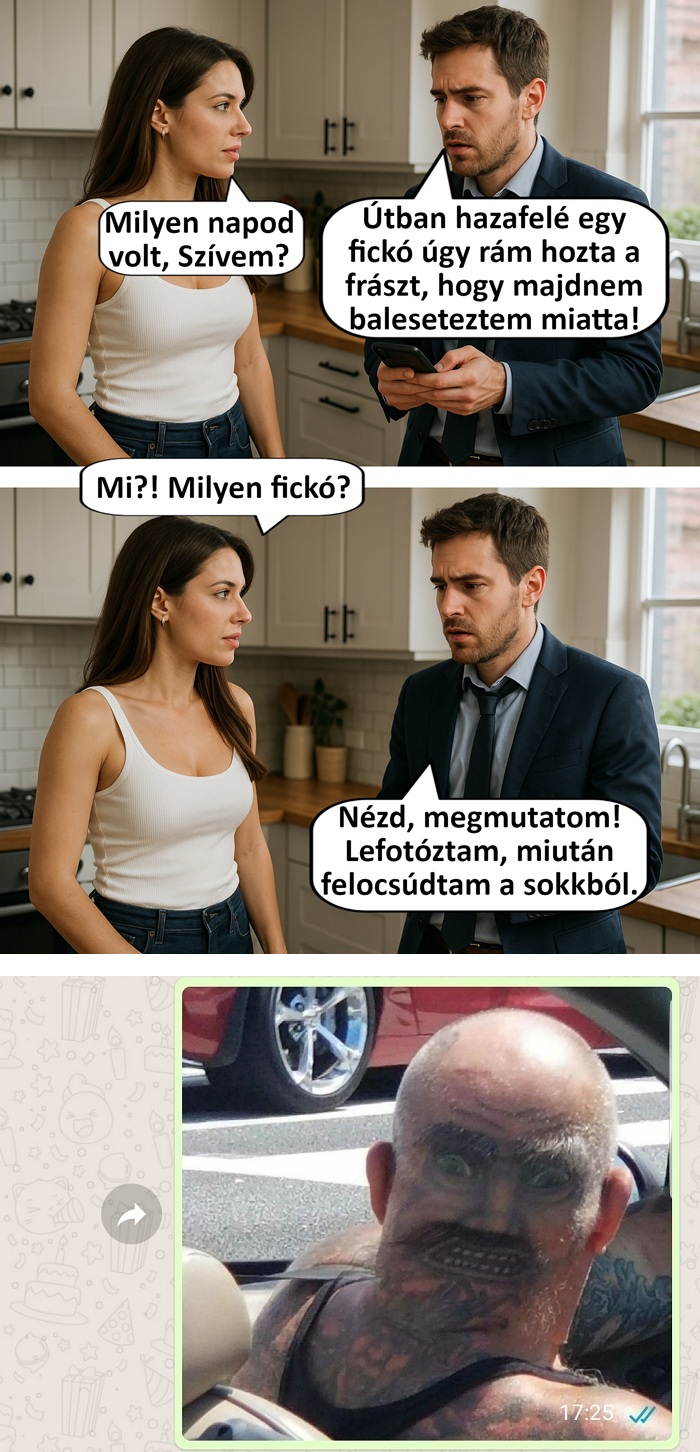 2. Próbáld meg elképzelni azt a szituációt, amikor vezetés közben oldalra pillantasz, és ő „bámul” vissza rád a melletted lévő autóból.